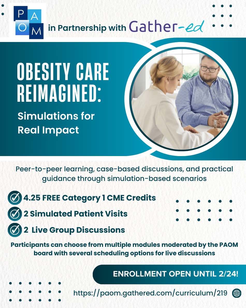 PAOM and Gather-ed invite you to participate in Obesity Care Reimagined: Simulations for Real Impact.